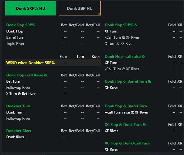 It includes dedicated modules for SRP IP/OOP, 3BP IP/OOP, and Donk SRP + 3BP Bets and Folds.